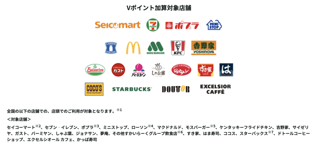 特定店舗というのも、よく利用するようなコンビニ・マクドナルド・カフェ・ファミレスが含まれているため、